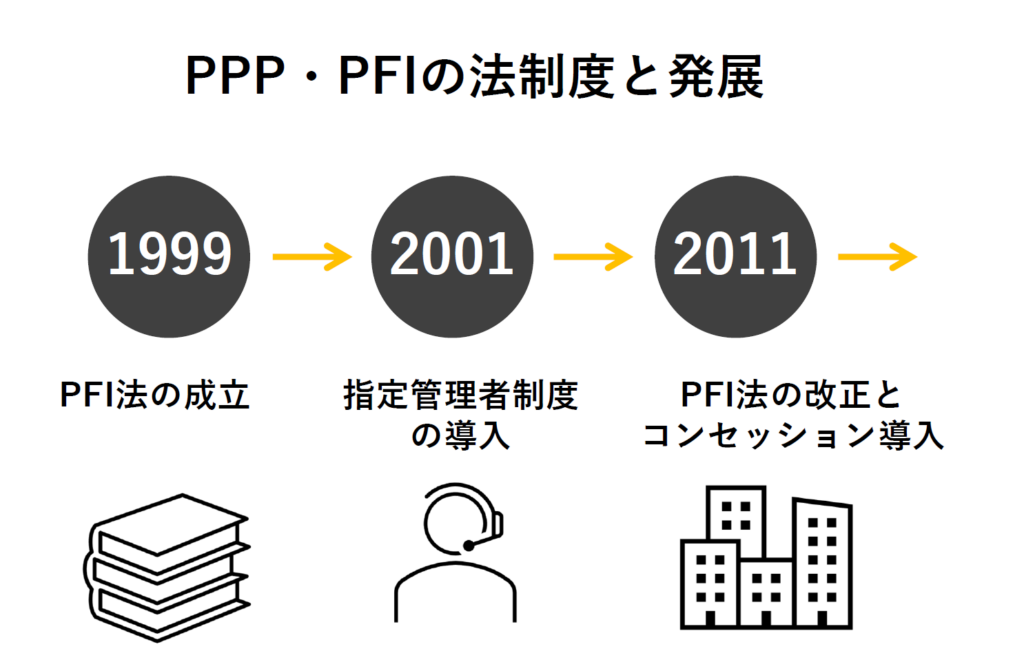 日本では、1999年に「民間資金等の活用による公共施設等の整備等の促進に関する法律」(いわゆるPFI法)が制定され、民間資金を活用した公共施設整備が法的に認められました。これを契機に、PFIによる事業が徐々に全国に広がり始めました。